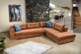 Γωνιακός καναπές με τραβήγματα στο σκελετό και τα μαξιλάρια πλάτης.