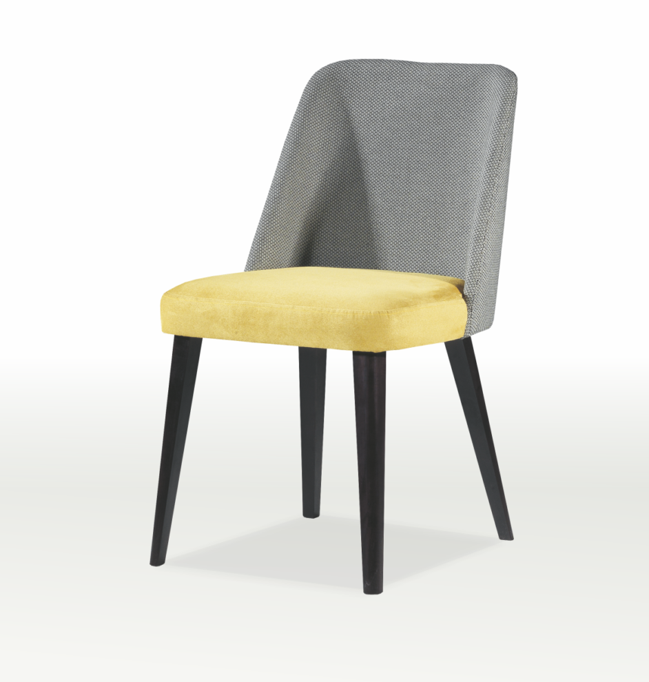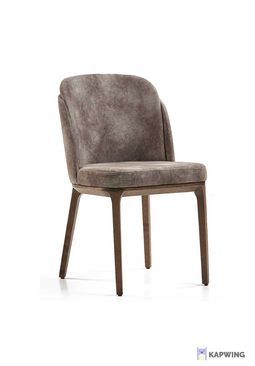 Kαρέκλα τραπεζαρίας με ξύλινα πόδια από μασίφ και διπλή καμπύλη στη πλάτη υπενδεδυμένη με αλέκιαστο ύφασμα σε γκρι τόνους, Όμορφες καμπύλες για μια minimal αισθητική στο χώρο σας. Ενδείκνυται για κεραμικές τραπεζαρίες καθώς θα συμπληρώσουν αρμονικά τη διακόσμηση του χώρου σας.