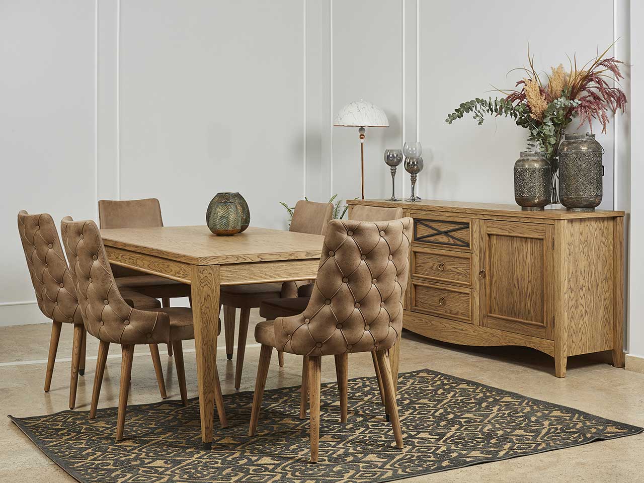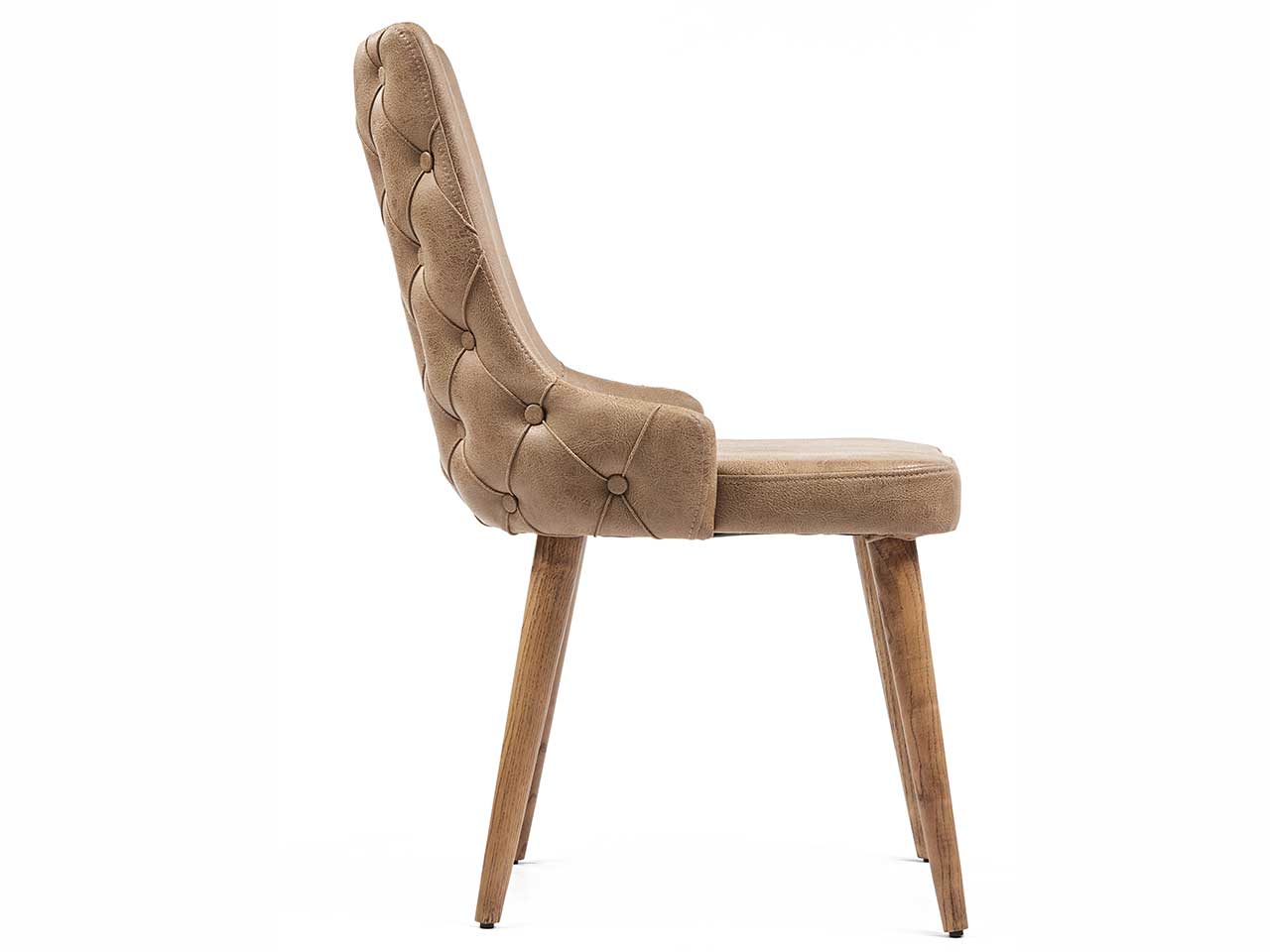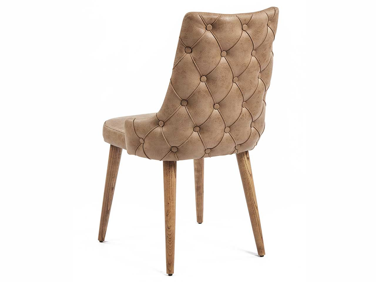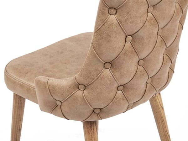 Kαρέκλα τραπεζαρίας με ξύλινα μασίφ πόδια σε φυσικό χρώμα, επενδεδυμένη με τεχνόδερμα μπεζ και γκρι χρώμα. Kομψό και διαχρονικό στυλ, ιδανικό για χώρο τραπεζαρίας όπως και σαλονιού. Αγκαλιάζει απόλυτα την πλάτη προσφέροντας αναπαυτικό κάθισμα.