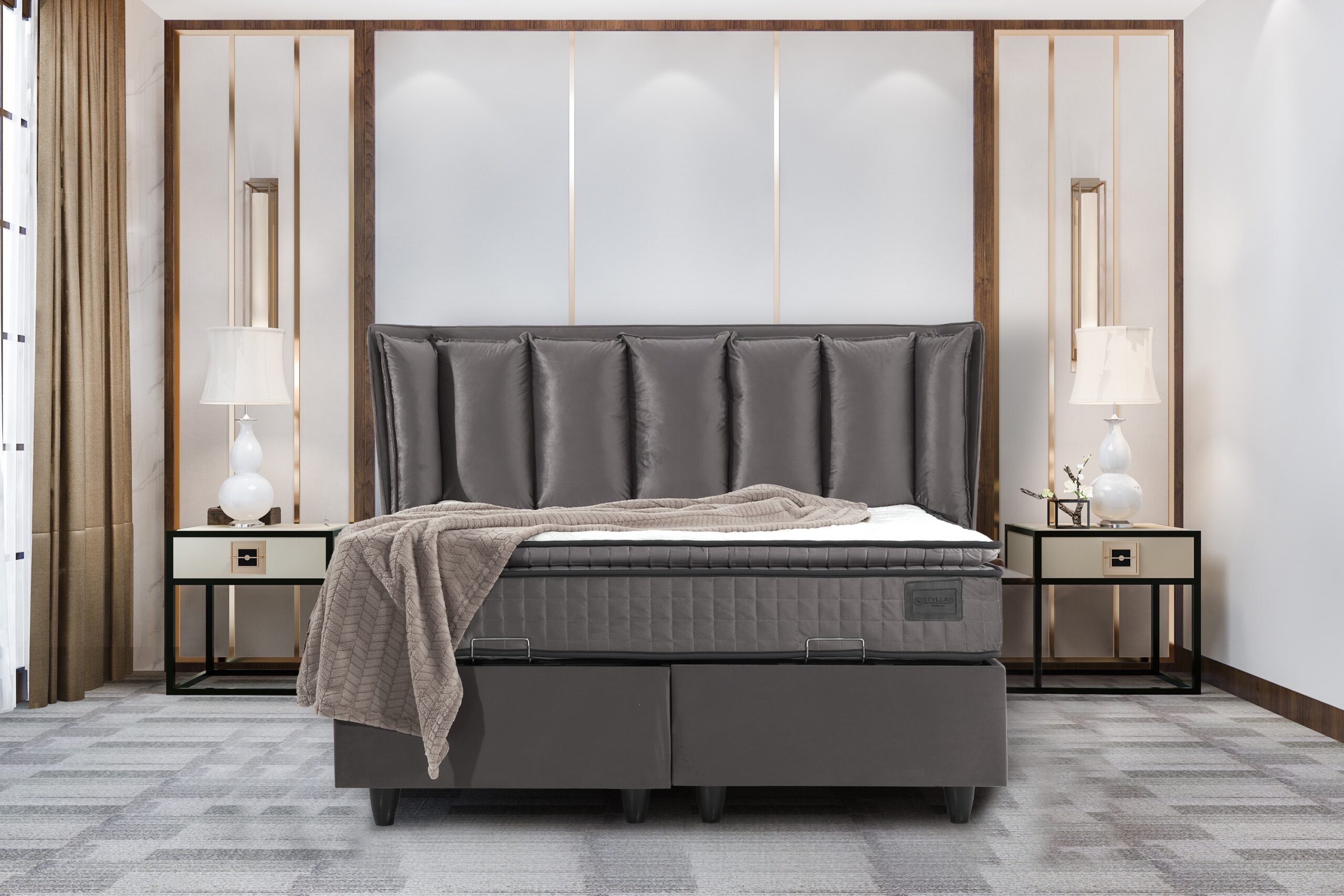 Δύο μεγάλοι αποθηκευτικοί χώροι και το μοναδικό ανατομικό στρώμα Styllas Comfort Plus με ενσωματωμένο ανώστρωμα