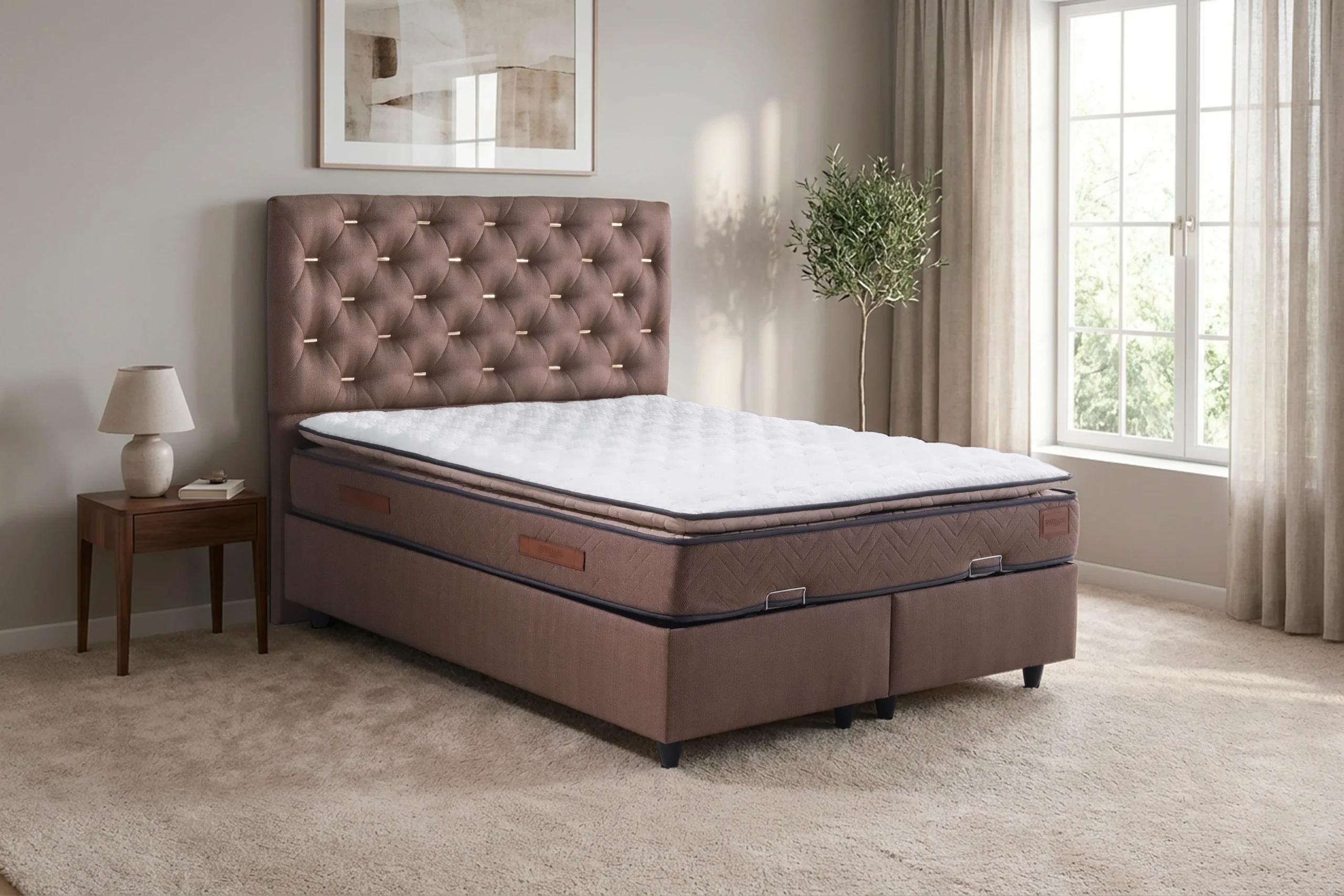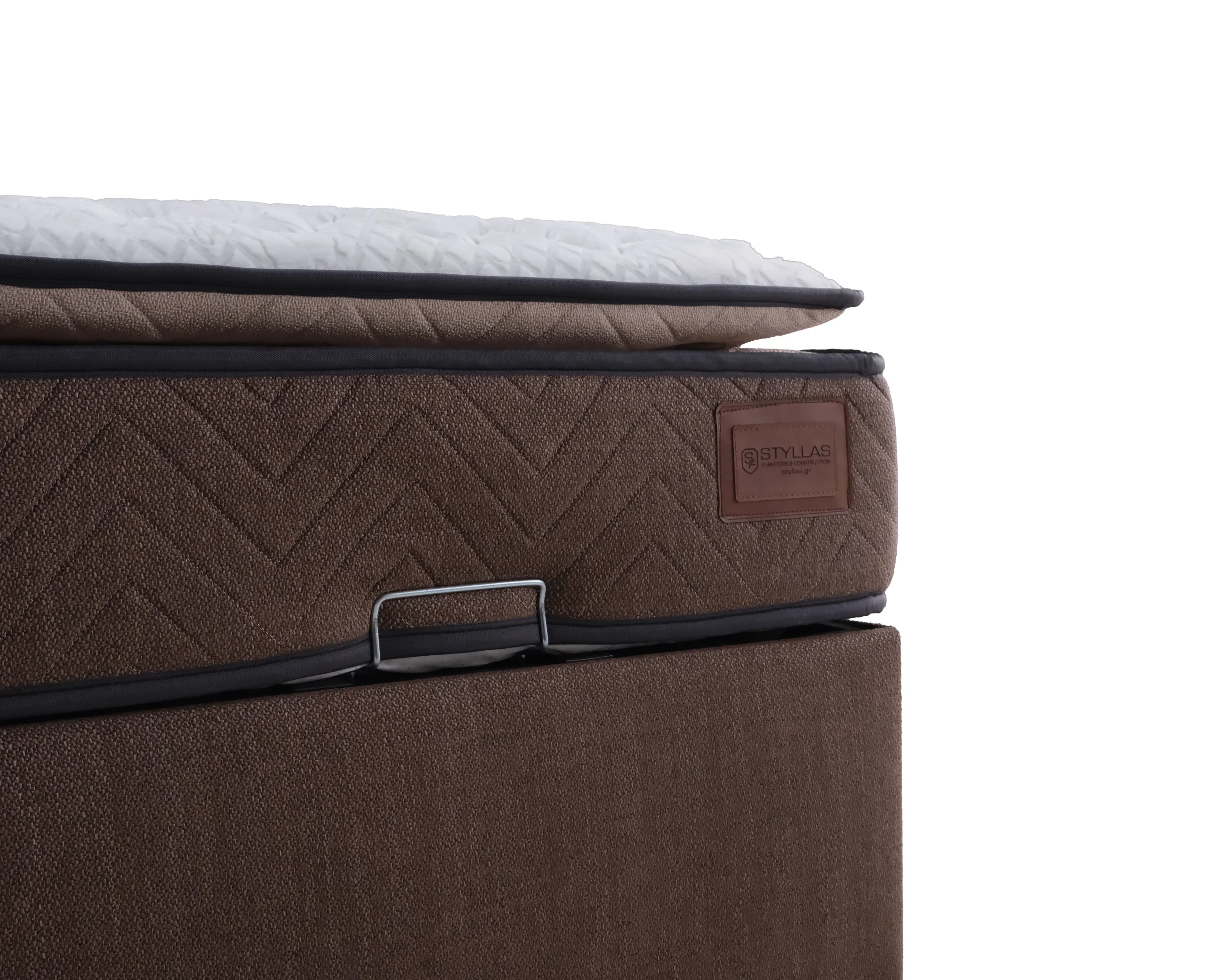Άριστης ποιότητας κρεβάτι στιβαρής κατασκευής, πολύ ανθεκτική μεταλλική βάση με αποθηκευτικό χώρο και επίπεδο πάτημα για το στρώμα που το κάνει να λειτουργεί μοναδικά για ένα χαλαρωτικό ξεκούραστο ύπνο. Μοναδικό κεφαλάρι με λεπτομέρεια στις ραφές του και στιβαρό δέσιμο με την βάση του.