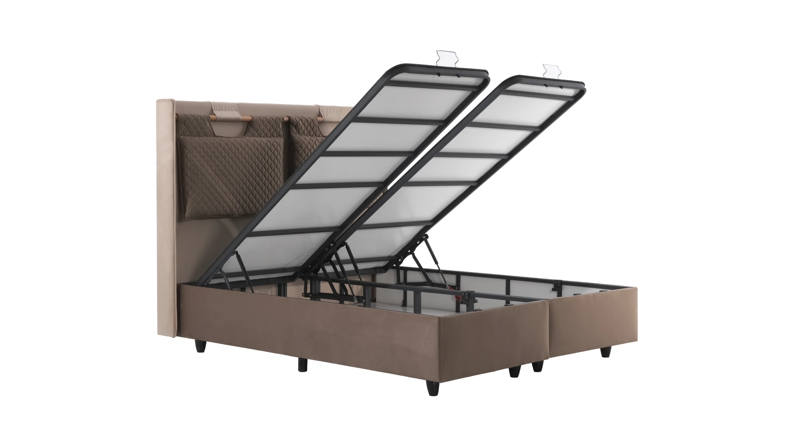 Άριστης ποιότητας κρεβάτι στιβαρής κατασκευής, πολύ ανθεκτική μεταλλική βάση με αποθηκευτικό χώρο και επίπεδο πάτημα για το στρώμα που το κάνει να λειτουργεί μοναδικά για ένα χαλαρωτικό ξεκούραστο ύπνο. Μοναδικό κεφαλάρι με λεπτομέρεια στις ραφές του και στιβαρό δέσιμο με την βάση του.