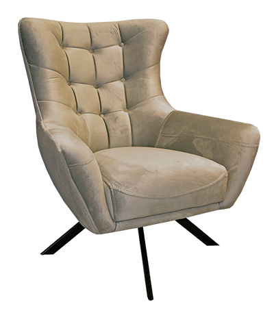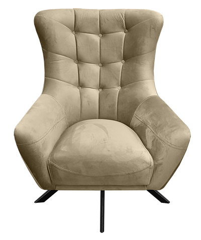 Καπιτονέ πολυθρόνα με μπράτσα και περιστρεφόμενη μεταλλική βάση.